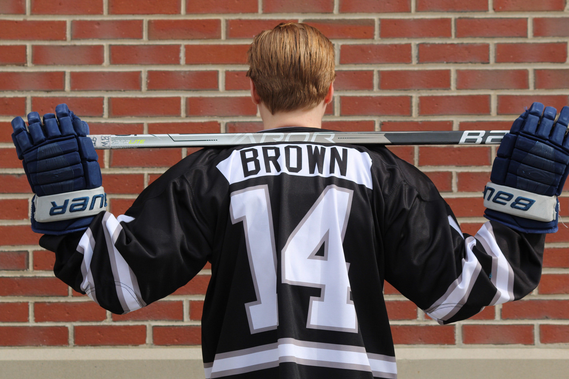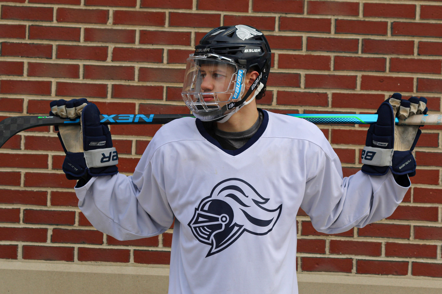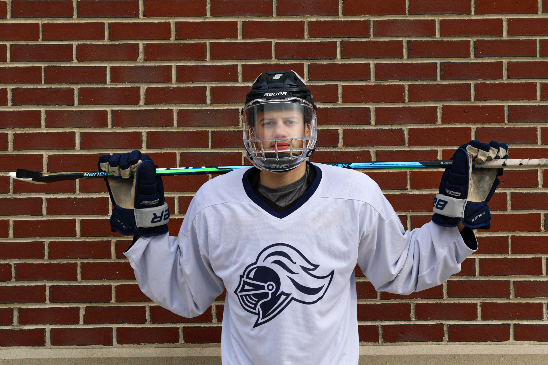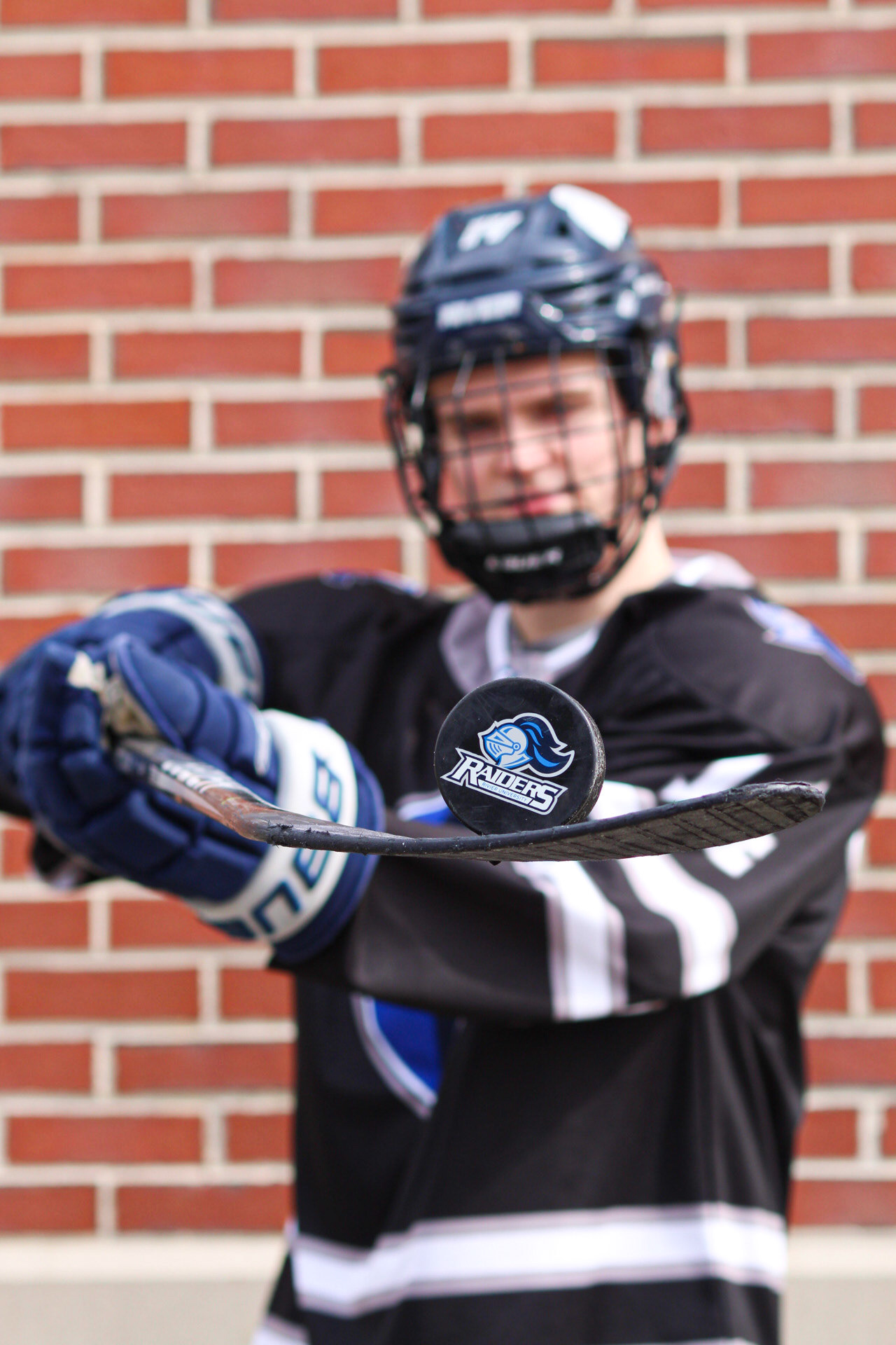 Hockey Portraits of 3 Rivier University Mens Hockey Players, MacCallum Brown #14, Alfred Rotiroti #8, and Jon Tavella #5